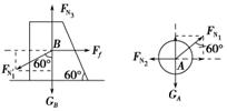 对B:由FN1′=FN1,FN1′cos 60°+mBg=FN3 及FN1′sin 60°=Ff