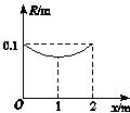 5、选择题 有一质量分布均匀的柱体关于中轴线对称,横截面均为圆面,中轴线与x轴重合,一端面位于x=0处,其截面半径R随长度x的变化情况如图1-2-6所示.则该柱体的重心位置为(? )