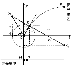 (3)若上述两个磁场保持不变,荧光屏仍在初始位置,但从A点沿X轴正方向射入区域Ⅰ的粒子束改为质量为m、电荷量为-q、动能为3E0的粒子,求荧光屏上的亮点的位置。