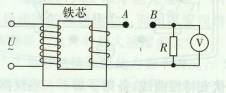 3、选择题  如图所示,一理想变压器原线圈匝数为n1=1000匝,副线圈匝数为n2=200匝,将原线圈接在u=220 sin100πt(V)的交流电压上,副线圈上电阻R和理想交流电压表并联接入电路,现在A、B两点间接人不同的电子元件,则下列说法正确的是