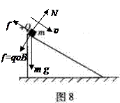 ![]() 参考答案:CD 本题解析:取物块为研究对象,小滑块沿斜面下滑由于受到洛伦兹力作用,如图 所示,C正确;N=mgcosθ+q 本题难度:简单 2、填空题 电子以4×106m/s的速率垂直射入磁感应强度为0.5T的匀强磁场中,受到的磁场力为 _________N,如果电子射入磁场时的速度v与B的方向间的夹角是180°,则电子所受的磁场力为 ___________N 参考答案:3.2×10-13; 0 本题解析: 本题难度:简单 3、选择题 如图为磁流体发电机的示意图,流体中的正、负离子均受到匀强磁场的作用,向M、N两金属极板运动。下列说法正确的是(? ) 参考答案:B 本题解析: 本题难度:简单 4、计算题 在坐标系xOy平面的第一象限内,有一个匀强磁场,磁感应强度大小恒为B0,方向垂直于xOy平面,且随时间作周期性变化,如图所示,规定垂直xOy平面向里的磁场方向为正。一个质量为m,电荷量为q的正粒子,在t=0时刻从坐标原点以初速度v0沿x轴正方向射入,不计重力的影响,经过一个磁场变化周期T(未确定)的时间,粒子到达第Ⅰ象限内的某点P,且速度方向仍与x轴正方向平行同向。则 参考答案:(1) 本题解析:(1)粒子进入磁场后做圆周运动的轨道半径为r 本题难度:一般 5、填空题 如图所示,是电子射线管演示电子在磁场中受洛伦兹力的实验装置,虚线是电子的运动轨迹,那么A端接直流高压电源的?极(正或负),C为蹄形磁铁的?极(N或S)。 参考答案:负、 S 本题解析:A端发射出电子,知A端接高压电源的负极,洛伦兹力方向向下,根据左手定则知磁场的方向由C指向D,所以C为蹄形磁铁的S极. 本题难度:简单 |