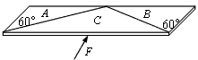 4、选择题 一个长方形板被锯成如图所示的A、B、C三块,放在光滑水平面上。A、B的质量为1kg,C的质量为2kg。现在以10N的水平力F沿C板的对称轴方向推C,使A、B、C保持相对静止沿F方向移动,在此过程中,C对A的摩擦力大小是
