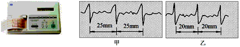 3、选择题 心电图仪(如图所示)通过一系列的传感手段,可将与人心跳对应的生物电流情况记录在匀速运动的坐标纸上。医生通过心电图,可以了解到被检者心跳的情况,例如,测量相邻两波峰的时间间隔,便可计算出1 min内心脏跳动的次数(即心率)。同一台心电图仪正常工作时测得待检者甲、乙的心电图分别如图甲、乙所示。若医生测量时记下被检者甲的心率为60次/min,则可推知乙的心率和这台心电图仪输出坐标纸的走纸速度大小分别为( ? )