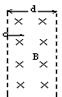 3、选择题 如图所示,比荷为e/m的电子从左侧垂直于界面、垂直于磁场射入宽度为d、磁感应强度为B的匀强磁场区域,要从右侧面穿出这个磁场区域,电子的速度至少应为