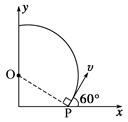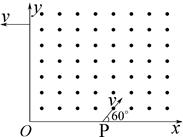 1、计算题 如图所示,一个质量为m、电荷量为q,不计重力的带电粒子,从x轴上的P(a,0)点,以速度v沿与x轴正方向成60°角射入第一象限内的匀强磁场中,并恰好垂直于y轴射出第一象限。