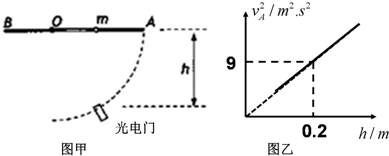 处.在水平杆的另一端A下摆经过的轨迹上安装光电门,用来测量A端的瞬时速度vA,光电门测量位置和距转轴O的高度差h可以调节,有一质量为m的小球套在光滑杆上,重力加速度g取10m/s2.