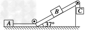 3、选择题 如图所示,质量分别为10 kg的物体A和B通过滑轮与物体C相连,物体与水平面和斜面间的动摩擦因数均为0.2,斜面的倾角为37°,若C刚好能匀速拉动A和B而下滑,则物体C的质量为(重力加速度g=10 m/s2)