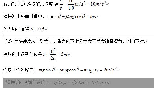 小题2:判断滑块最后能否返回斜面底端?若能返回,求出返回斜面底端时的速度大小;若不能返回,求出滑块停在什么位置.