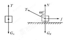 本题解析:(1)对物体A、B分别进行受力分析如下图,