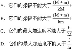 参考答案:ADE 本题解析:机械波频率等于振源频率,A正确;质点不随机械波的传播而迁移,B错误;纵波的传播方向与波的传播方向共线,C错误;一个周期内,振动在介质中传播一个波长,D正确;机械波在介质中传播的速度由介质本身决定,E正确。 本题难度:一般 4、选择题 两列沿相反方向传播的振幅和波长都相同的半波,如图29(甲)所示,在相遇的某一时刻两列波“消失”,如图29(乙),此时图中a、b质点的振动方向是: 参考答案:B 本题解析:两列波在相遇的某一时刻两列波“消失”了,是因为两列波分别引起各质点的位移矢量和为零。但两列波分别引起各质点总的振动速度的矢量和不为零。对于a点,波1使其振动的速度为零,波2使其振动的速度也向下,故a点的振动合速度应向下。而对于b点,波1使其振动的速度方向向上,波2使其振动的速度为零,故b点的振动合速度应向上。所以B选项正确 本题难度:简单 5、选择题 如图1所示,两木块A和B叠放在光滑水平面上,质量分别为m和M,A与B之间的最大静摩擦力为f,B与劲度系数为k的轻质弹簧连接构成弹簧振子。为使A和B在振动过程中不发生相对滑动,则 [ ] 参考答案:BD 本题解析:分析:A和B在振动过程中恰好不发生相对滑动时,AB间静摩擦力达到最大,此时振幅最大.先以A为研究对象,根据牛顿第二定律求出加速度,再对整体研究,根据牛顿第二定律和胡克定律求出振幅. 本题难度:简单 One of the greatest pleasures in life is conversation. 生活中最大的乐趣之一是交谈. |