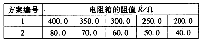 (2)改变电阻箱的阻值R,分别测出阻值R0=10Ω的定值电阻两端的电压U下列两组R的取值方案中,比较合理的方案是____________(选填“1”或“2”)。