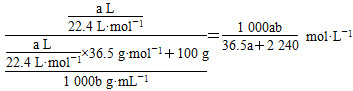 (1)将标准状况下的a L氯化氢气体溶于100 g水中,得到的盐酸的密度为b g·mL-1,则该盐酸的物质的量的浓度是________。