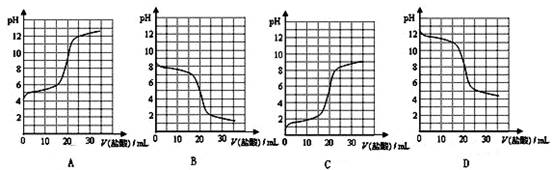 2、选择题 室温下,向20.00mL稀氨水中逐滴加入等物质的量浓度的盐酸,下列示意图变化趋势正确的是(? )