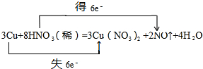 (3)G→E为稀硝酸和铜的反应,方程式为3Cu+8HNO3(稀)═3Cu(NO3)2+2NO↑+4H2O,用双线桥标出电子转移的方向和数目为: