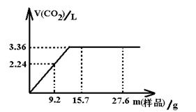 2、计算题 (12分)某学生用NaHCO3和 KHCO3组成的某混合物进行实验,现称取不同质量的混合物样品溶于水后,分别滴入相同浓度的盐酸50ml,产生CO2气体的体积(标准状况)如图所示。