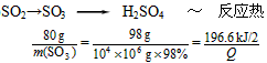 解得:m(SO3) = 8.0×109g = 8.0×103t,Q = 9.83×109 kJ。