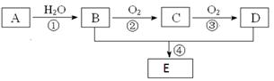 2、填空题 (14分)已知A的产量通常用来衡量一个国家的石油化工水平,现以A为主要原料合成一种具有果香味的物质E,其合成路线如下图所示。