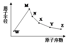 5、填空题 W、M、N、X、Y、Z是五种常见的短周期元素,其原子半径随原子序数变化如右图所示。已知W的一种核素的质量数为18,中子数为10;M和Ne原子的核外电子数相差1;N与X相邻;X的单质是一种常见的半导体材料;Y的最外层电子数是其最内层电子数的3倍;Z的非金属性在同周期主族元素中最大。