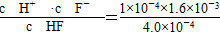 即可。(3)当pH=4时,溶液中的c(F-)=1.6×10-3 mol·L-1,溶液中c(Ca2+)=2.0×10-4 mol·L-1,溶液中离子积Qc=c(Ca2+)·c2(F-)=5.12×10-10>Ksp(CaF2)=1.5×10-10,故有沉淀产生。