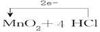 4、填空题 已知实验室制氯气的化学方程式为:MnO2+4HCl(浓) MnCl2+Cl2↑+2H2O,其中 (1) MnO2中Mn元素被_____________。(填“氧化”或“还原”) (2) HCI中氯原子___________(填“得到”或“失去”)电子。 (3)反应中还原剂与氧化剂的物质的量之比为______________。 (4)标出此反应中电子转移情况:MnO2+4HCl(浓) MnCl2+Cl2↑+2H2O