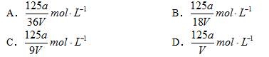 5、选择题 将溶质的质量分数为a%的NaOH溶液蒸发掉mg水后,变成溶质质量分数为2a%的NaOH不饱和溶液VmL ,所得溶液的物质的量浓度是:?(?)