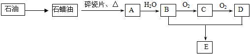 4、填空题 (共14分)若A~E均为单官能团有机物,它们之间有如下转化关系:
