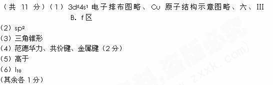 5、填空题 (11分)下表为元素周期表的一部分,其中编号代表对应的元素。