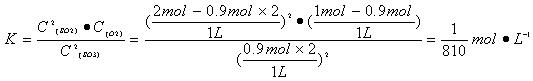 解得x="0.9" mol (2分) 同等条件下开始加入2molSO3与开始加入2molSO2、1molO2是相当的,属于等效平衡,平衡时各物质的浓度相等。 反应2SO3 (g) 2SO2 (g) + O2(g) 的平衡常数: