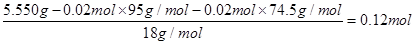 n(KCl)=0.06mol-2×0.02mol=0.02mol?(2分)