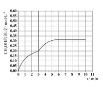 c.在此条件下,系统中CH3OH的浓度随反应时间的变化趋势如图所示,当反应时间达到3min时,迅速将体系温度升至600K,请在图中画出3~10min内容器中CH3OH浓度的变化趋势曲线: