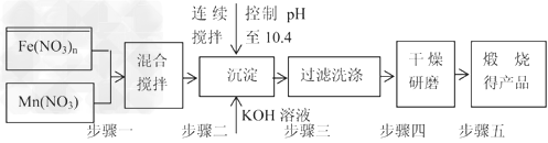 (1)原料Fe(NO3)n中n=___________?,投入原料Fe(NO3)n和Mn(NO3)2的物质的量之比应为_____________。 ?