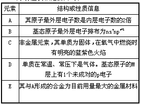(1)这五种元素的名称A_______B_______C_______D_______E_______