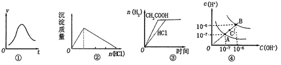 2CO2(g)+6H2(g) CH3CH2OH(g)+3H2O(g) ΔH=a kJ·mol-1,在一定压强下,测得该反应的实验数据如表所示。请根据表中数据回答下列问题。 ![]() ①上述反应的a________0(填“大于”或“小于”)。 ②恒温下,向反应体系中加入固体催化剂,则该反应的反应热a值____(填“增大”、“减小”或“不变”)。 在一定温度下,增大 的值,CO2转化率_________,生成乙醇的物质的量________(填“增大”、“减小”、“不变”或“不能确定”)。 参考答案:(1)①CO2+3H2 本题解析:(1)①根据质量守恒,反应方程式为CO2+3H2 本题难度:困难 3、选择题 反应4A(g)+5B(g)=4C(g)+4D(g)在0.5L密闭容器中进行,30s后A减少了0.90mol,则此反应的速率可表示为( ) 参考答案:同一化学反应同一时间段内,各物质的反应速率之比等于计量数之比判断其它物质的反应速率. 本题解析: 本题难度:一般 4、选择题 在372K时,把0.5molN2O4通入体积为5L的真空密闭容器中,立即出现红棕色。反应进行到2s时,NO2的浓度为 0.02mol·L-1。在60s时,体系已达平衡,此时容器内压强为开始时的1.6倍。下列说法正确的是(?) 参考答案:B 本题解析:N2O4和NO2存在如下转化关系N2O4 本题难度:简单 5、选择题 下列各示意图与对应的表述正确的是 参考答案:B 本题解析:A、由图①可知,一定条件下某化学反应的速率随时间变化先增大后减小,可能是发生放热温度升高造成的,也可能是生成物中有该反应的催化剂,错误;? B、在四羟基合铝酸钠溶液中加入盐酸,发生的反应依次为[Al(OH)4]- + H+? ====Al(OH)3↓ + H2O、Al(OH)3 + 3H+====Al3+ + 3H2O,产生沉淀的质量变化如图②所示,正确;C、等体积、等物质的量浓度的盐酸和醋酸溶液与足量镁粉反应,产生H2的物质的量相同,但醋酸为弱电解质,部分电离,醋酸溶液中氢离子浓度较盐酸中氢离子浓度小,反应速率慢,与图像不符,错误;D、图④为水的电离平衡曲线图,若从A点到C点,水的离子积增大,呈中性,应采用加热的方法,错误。 本题难度:一般 |