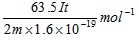 阴极:________________,阳极:_______________;若电流强度为I(A),时间为t(s),在阴极上铜片的质量增加m(g),铜的摩尔质量为63.5g·mol-1,已知一个1价离子所带电量(即1个电子的电荷)是1.60×10-19C,则可求得阿佛加德罗常数为:(不用化简) NA=_______________