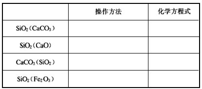 3、填空题  把除去下列物质中杂质(括号内物质)的操作方法和化学 方程式填入下表的空格中。