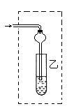 1、实验题 如图在试管A中先加入2mL的甲,并在摇动下缓缓加入2mL乙,充分摇匀,冷却后再加入丙,用玻璃棒充分搅拌后将试管固定在铁架台上,在试管B中加入5ml丁溶液,按图连接好装置,用酒精灯对试管A小火加热3~5min后,改用大火加热,当观察到B试管中有明显现象时停止实验。试回答: