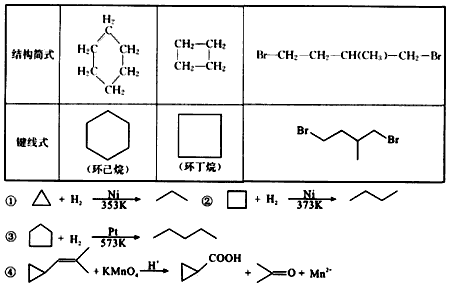 2、填空题 环丙烷可作为全身麻醉剂,环己烷是重要的有机溶剂。下面是部分环烷烃及烷烃衍生物的结构简式、键线式和某些有机化合物的反应式(其中Pt、Ni是催化剂)。