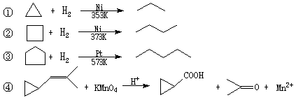 (2)环丙烷;在都使用催化剂的条件下,加成反应的温度最低