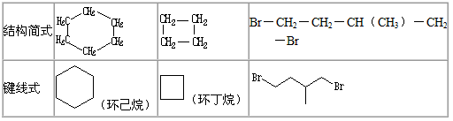 5、填空题 环丙烷可作为全身麻醉剂,环己烷是重要的有机溶剂。下面是部分环烷烃及烷烃衍生物的结构简式、键线式和某些有机化合物的反应式(其中Pt、Ni是催化剂)。