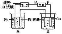 1、填空题 用如图所示的装置进行电解。A中盛有AgNO3溶液,B中盛有饱和Na2SO4溶液通电一会儿,发现湿润的淀粉KI试纸的C端变为蓝色。则: