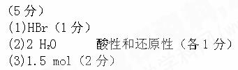 5、填空题 (5分)(1)在反应2KMnO4+16HBr===5Br2+2MnBr2+2KBr+8H2O中,还原剂是?。
