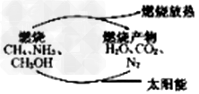 3、选择题 有专家指出,如果对燃烧产物如CO2、H2O、N2等利用太阳能使它们重新组合,那么,不仅可以消除对大气的污染,还可以节约燃料,缓解能源危机。观察下图所示,判断在此构想的物质循环中太阳能最终转化为