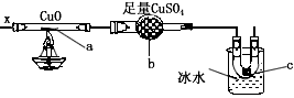 4、选择题 按下图装置,持续通入X气体,可以看到a处有红色物质生成,b处变蓝,c处得到液体,则X气体可能是