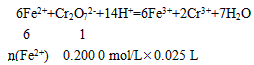 另一份用 0. 200 0 mol/LK2Cr2O7酸性溶液滴定,当CrO72-恰好完全被还原为Cr3+时,消耗K2Cr2O7溶液的体积为25. 00 mL。通过计算确定莫尔盐的化学式。
