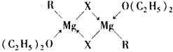 2、填空题 (1)金属镁有许多重要的用途,格利雅试剂的结构简式可表示为RMgX,它是金属镁和卤代烃反应的产物,简称格氏试剂,它在醚的稀溶液中以单体形式存在,并与二分子醚络合,在浓溶液中以二聚体存在,结构如下图: