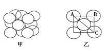 (5)构成G晶体的微粒是________,G的晶胞结构如下图甲所示,G的晶胞为________结构。若G原子的半径为1.27×10-10 m,G金属晶体中的晶胞长度,即下图乙中AB的长度为________m。