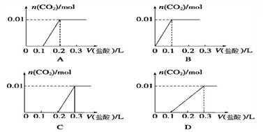 5、选择题 将0.4g NaOH和1.06g Na2CO3混合并配成溶液,向溶液中滴加0.1mol/L稀盐酸。下列图象能正确表示加入盐酸的体积和生成CO2的物质的量的关系的是(?)