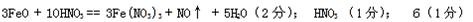5、填空题 (4分)完成并配平下列化学方程式□FeO + □HNO3——□Fe(NO3)3 + NO↑+ □ ,