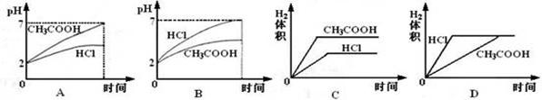 2、选择题 在体积均为1L,pH均等于2的盐酸和醋酸溶液,分别投入0.23g Na,则下图中比较符合反应事实的曲线是(?)