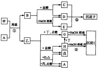 5、填空题 下图转化关系中,A、B、C、D、E都是短周期元素的单质,在常温常压下A是固体,其余都是气体,且C呈黄绿色。化合物H和I两种气体相遇时产生白烟。化合物G的焰色反应为黄色。反应①和②均在溶液中进行。